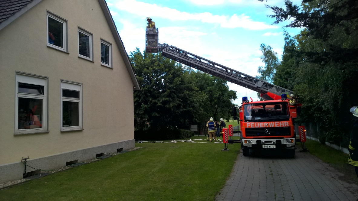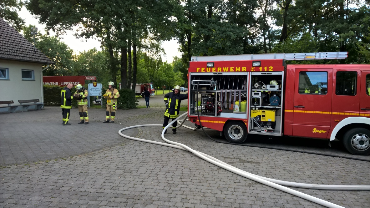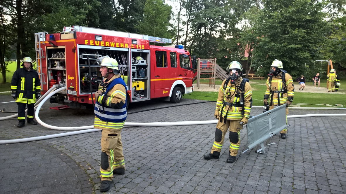 Ziel der Übung war es, die Räumlichkeiten der Alten Schule, insbesondere die Kellerräume besser kennenzulernen. An der Übung haben 35 Wehrleute aus Rebbeke und Hörste teilgenommen.